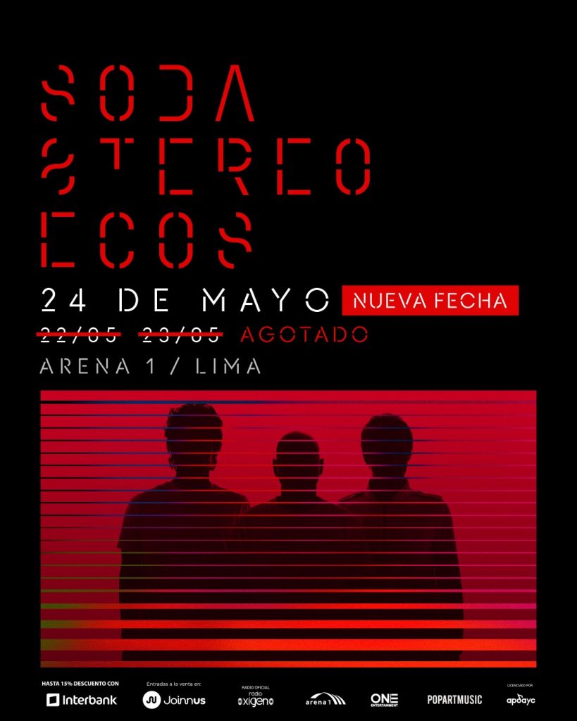 La legendaria banda argentina Soda Stereo pondrá fin a su paso por Perú con un tercer y último concierto que hará vibrar a miles de fanáticos. El show, auspiciado por Radio Oxígeno, será una verdadera celebración del rock latino y de la huella imborrable que dejaron Gustavo Cerati, Zeta Bosio y Charly Alberti en varias generaciones.