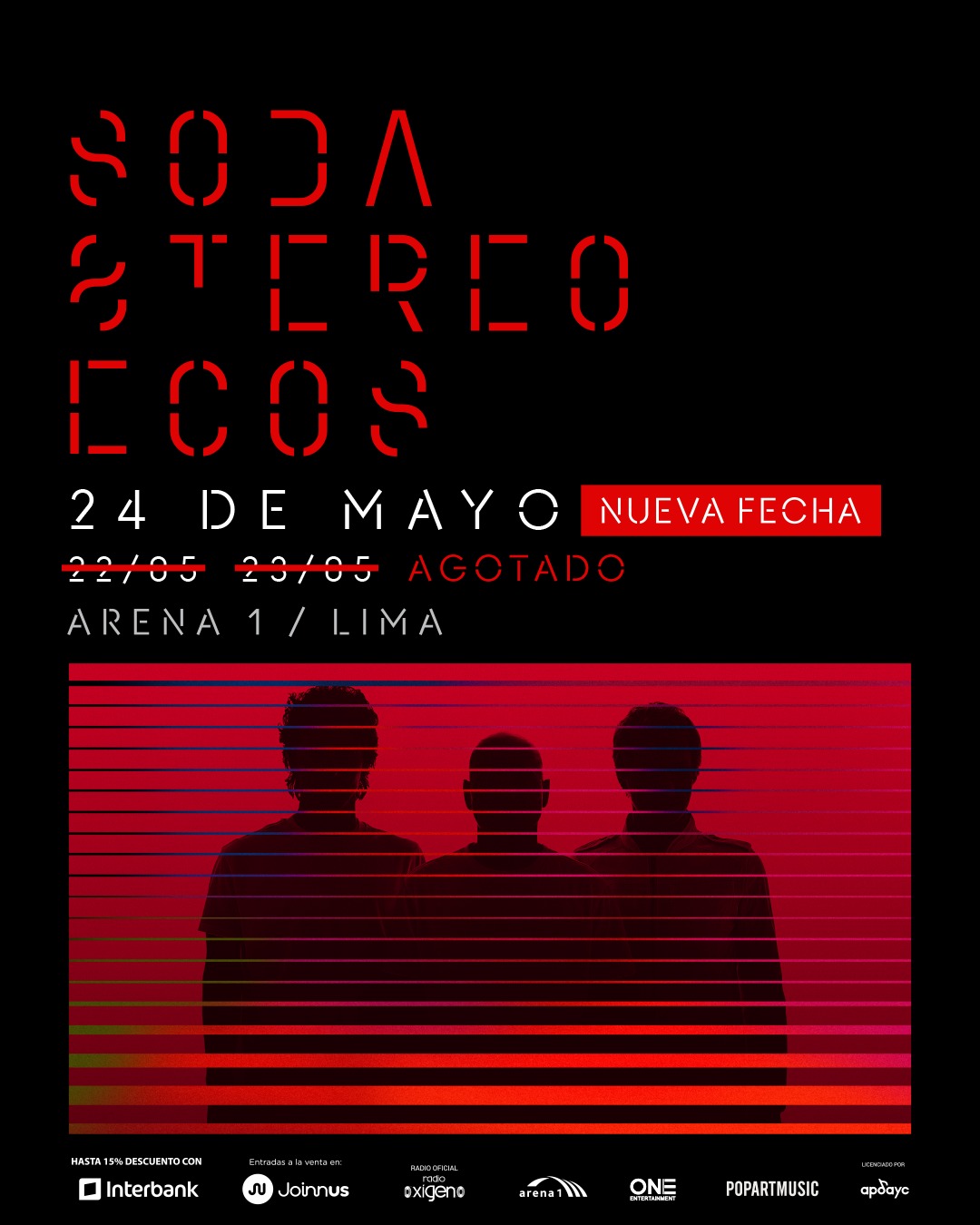 El espectáculo, parte de la gira Ecos, reunirá a los seguidores de la icónica agrupación en una noche cargada de nostalgia, energía y emoción. Con una puesta en escena impactante, pantallas gigantes y un sonido impecable, Soda Stereo repasará los grandes clásicos que marcaron su carrera, entre ellos De música ligera, Persiana americana y Cuando pase el temblor.